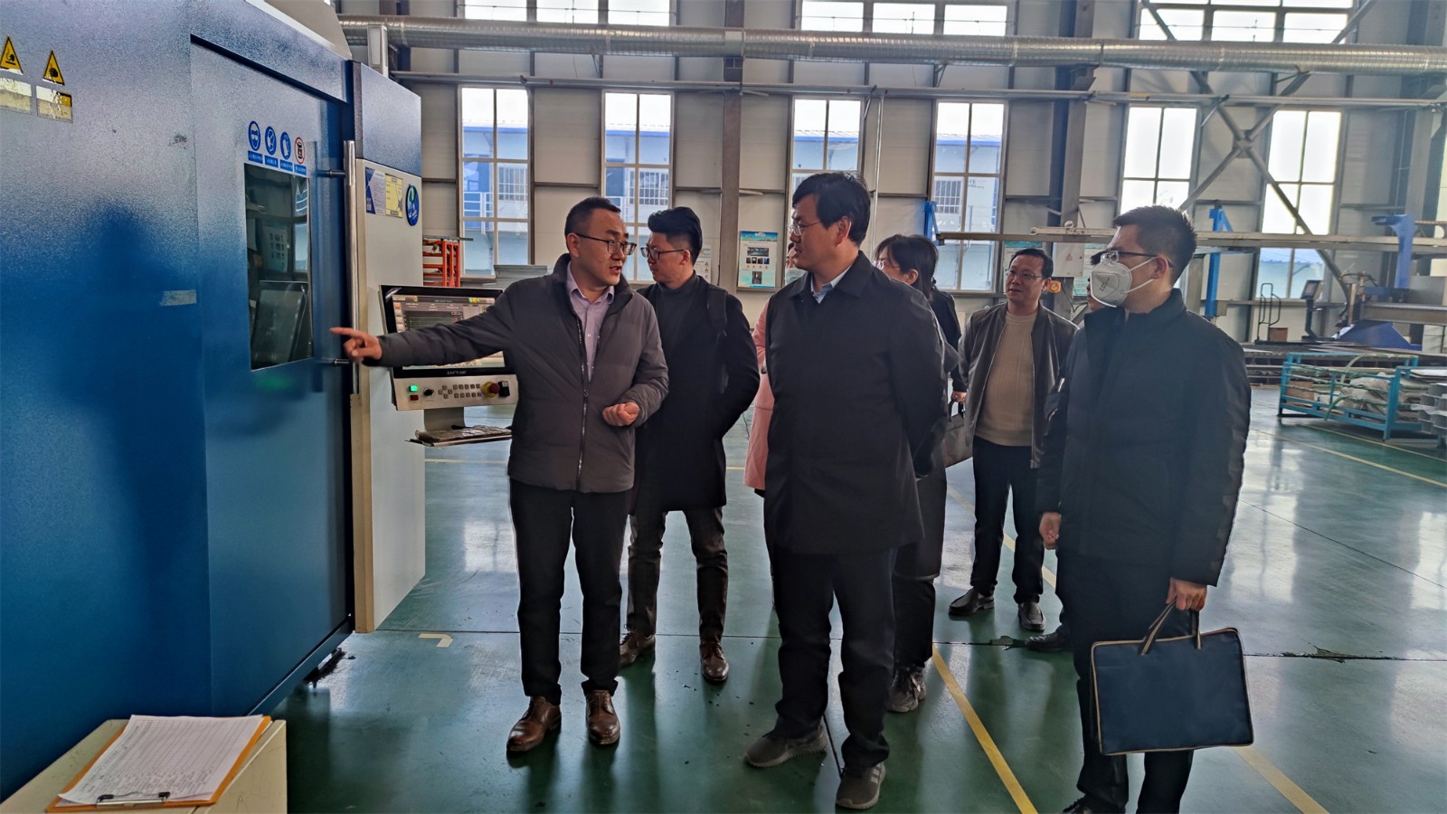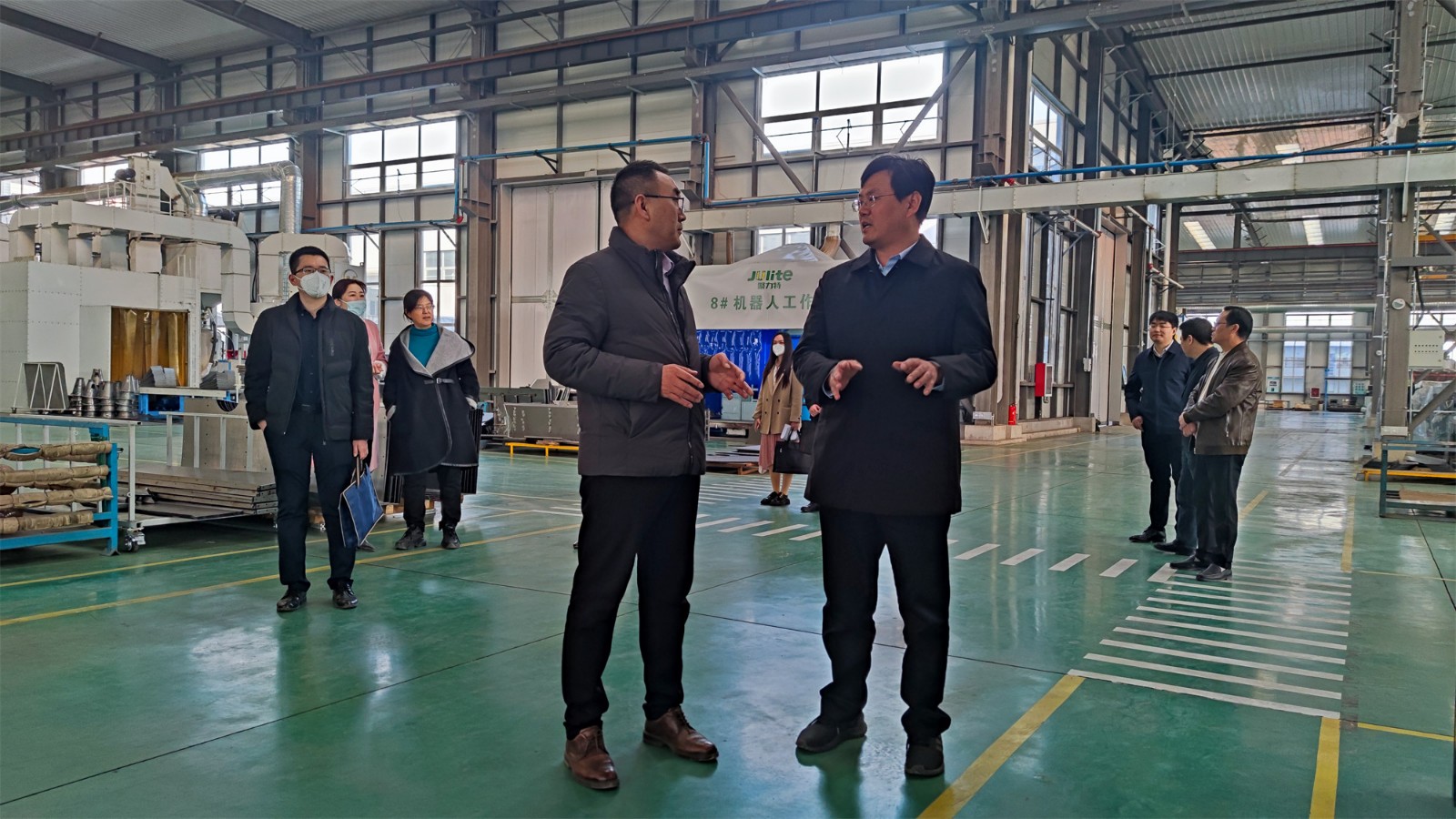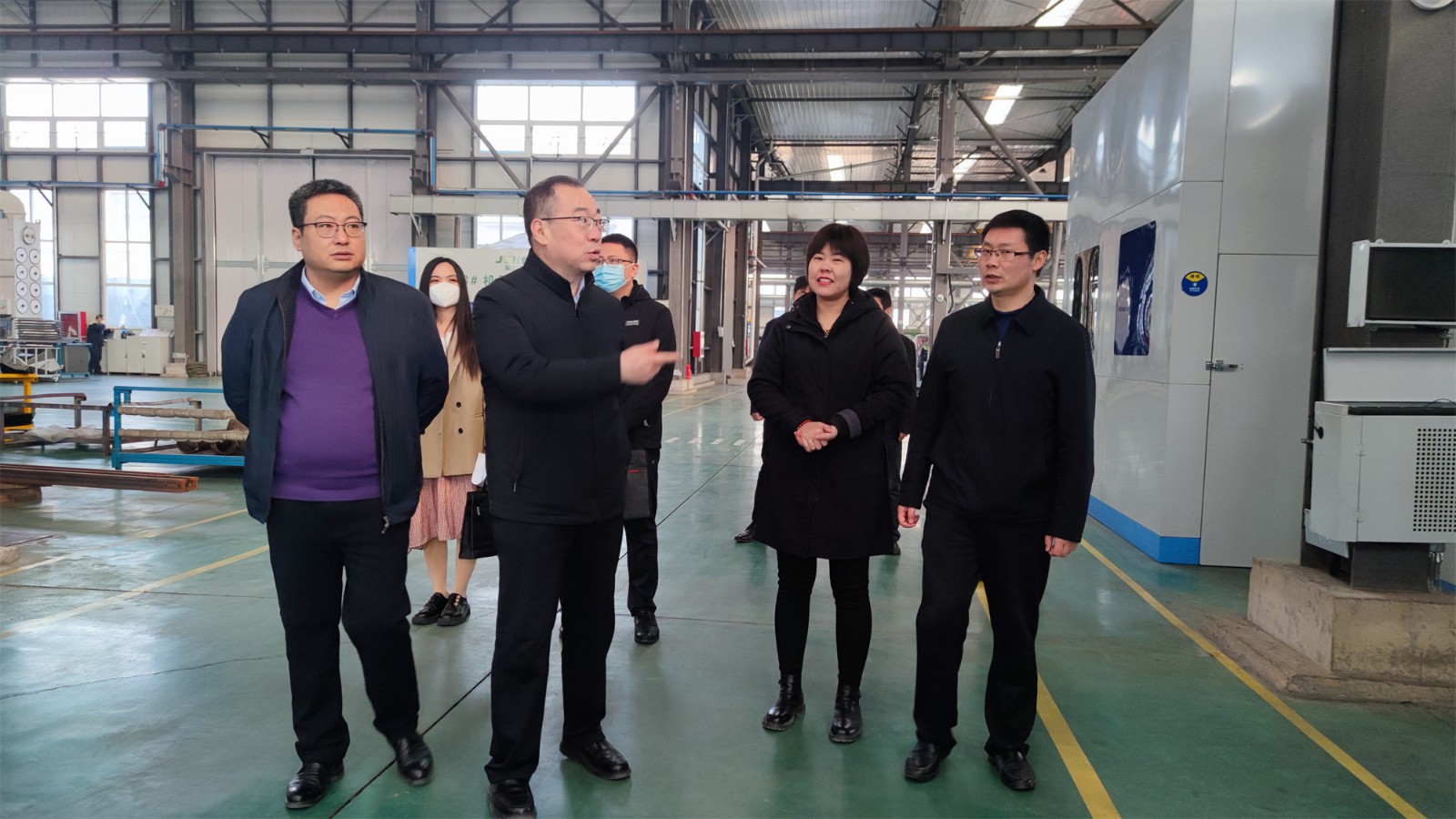 尹處長一行來到工廠廠房,參觀了生產(chǎn)現(xiàn)場,詳細(xì)詢問了項(xiàng)目投產(chǎn)情況。高總經(jīng)理向尹處長匯報了聚力特工業(yè)設(shè)備智能制造產(chǎn)業(yè)化項(xiàng)目的建設(shè)進(jìn)程、生產(chǎn)能力和發(fā)展前景,并對各級政府在疫情期間全力保障企業(yè)的生產(chǎn)生活表示了衷心的感謝。