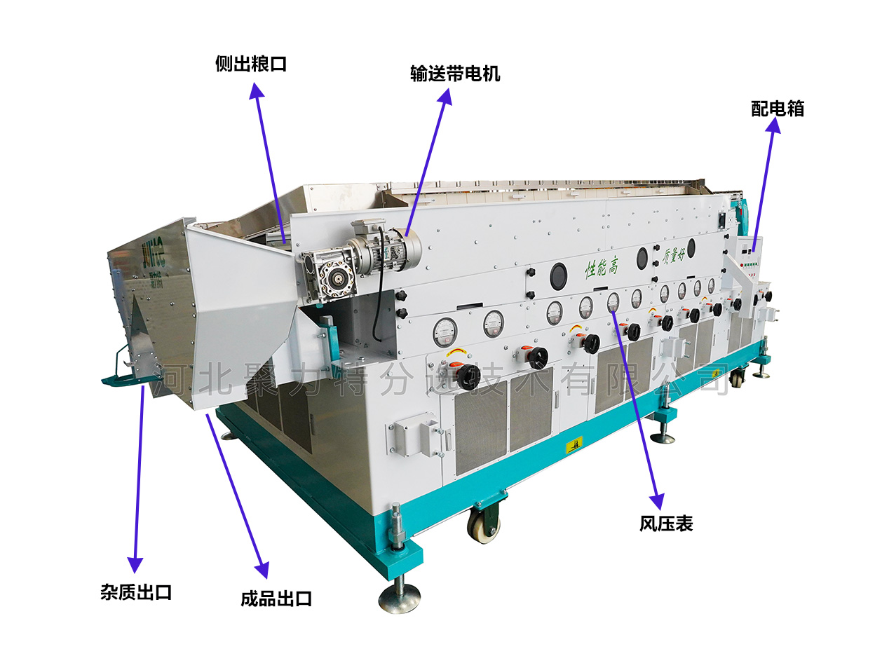 適用于小麥、玉米、水稻、各種豆類、西瓜籽及各種油料作物的精選加工,可有效去除物料中的秕籽、芽籽、蟲蛀粒、霉變粒、黑粉病粒等比重較輕的雜質(zhì)。